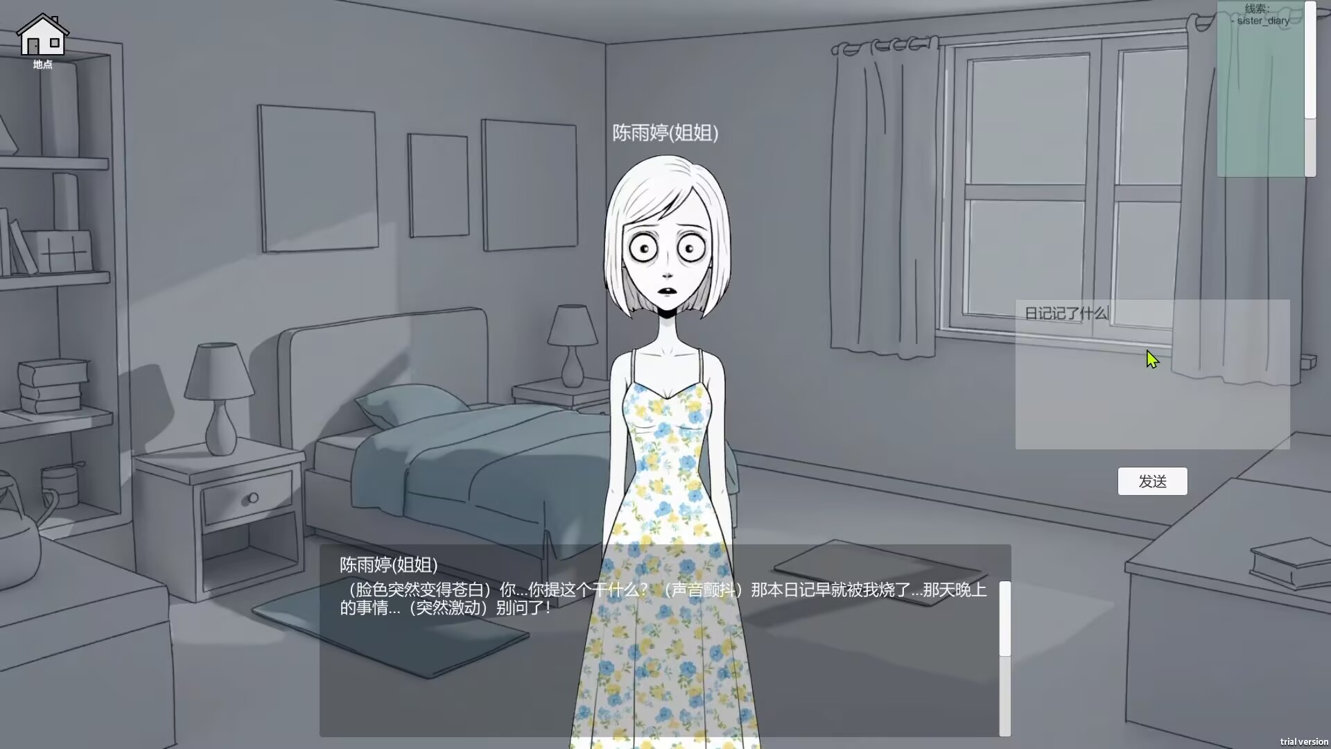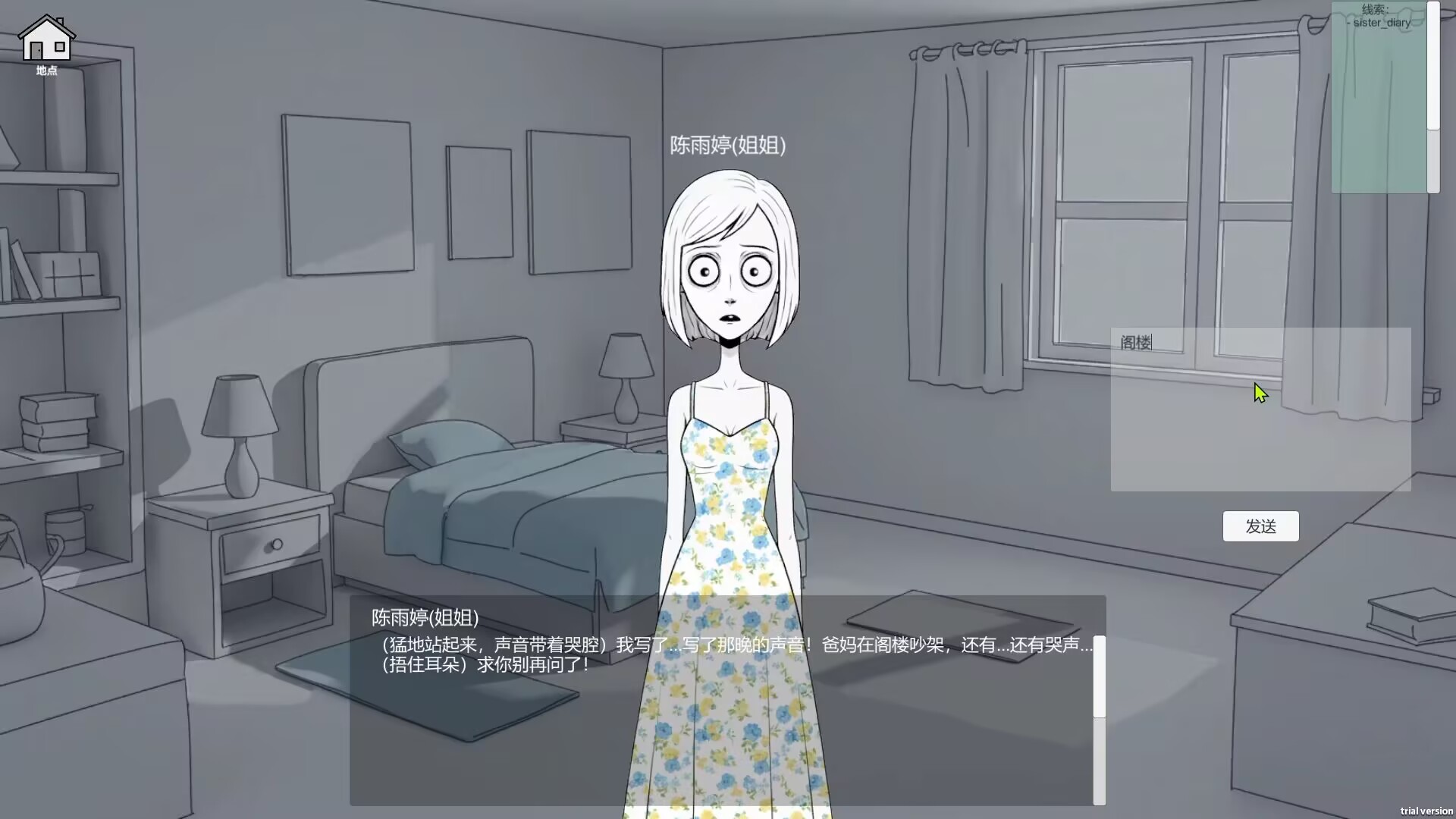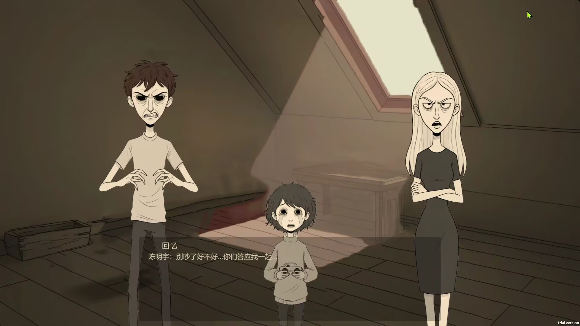 这款游戏是一款 2D剧情互动游戏,玩家在一个充满家庭回忆与遗憾的环境中,通过 角色对话、黑屏字幕和旁白,逐步揭开家人之间的情感故事。游戏强调 代入感和情绪沉浸,伴随 打字机式字幕音效和背景音乐,让玩家体验 温暖、悔恨与成长的家庭情感旅程。